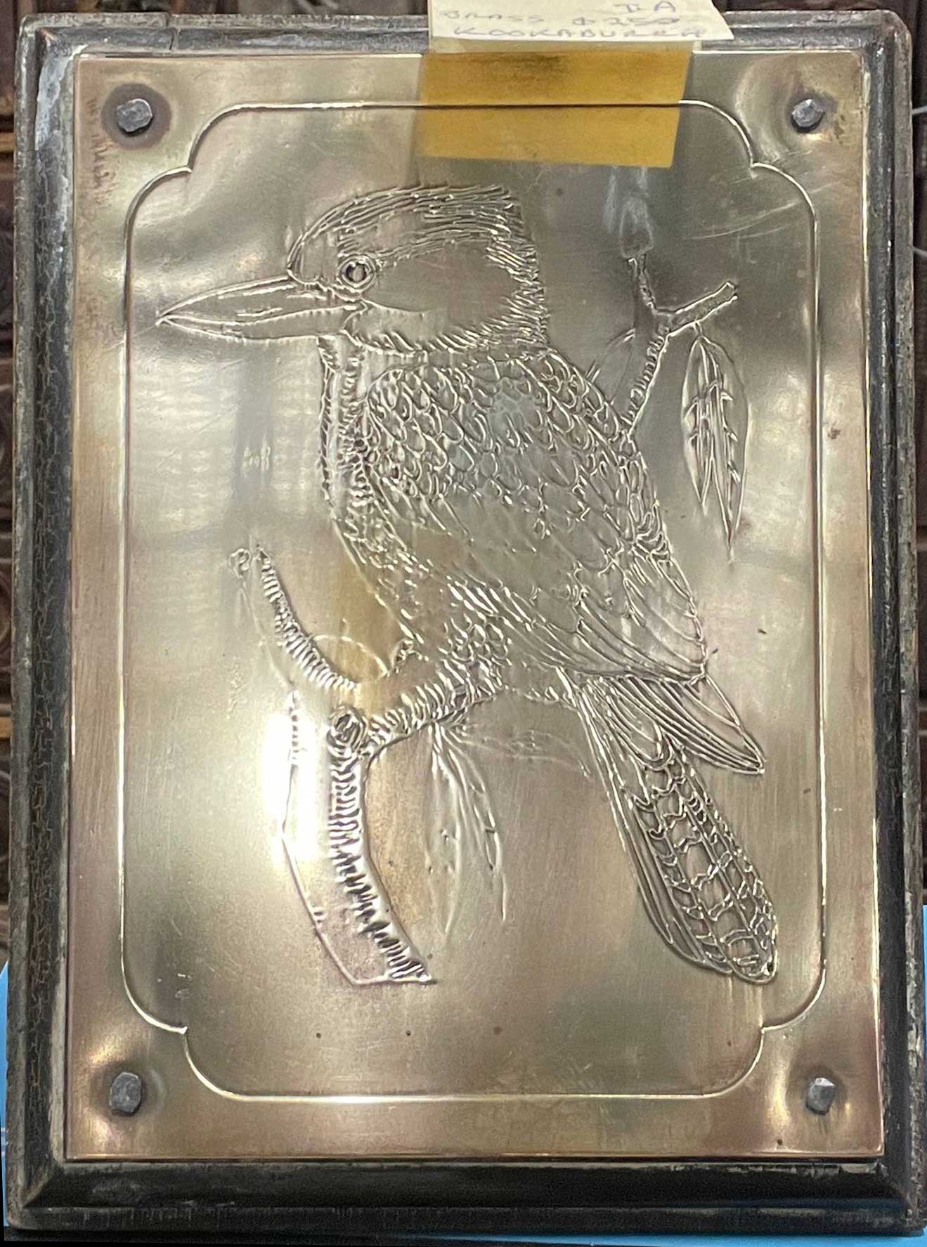 Brass etched kookaburra - old.